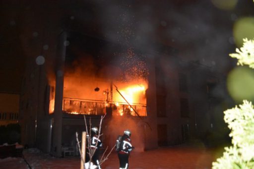 Das Ehepaar in der betroffenen Wohnung schlief bereits, als die Frau wegen einem Knistern erwachte und auf den Balkonbrand aufmerksam wurde. Das Feuer konnte durch den Ehemann nicht mehr gelöscht werden. Das Paar und die restlichen Hausbewohner begaben sich darauf nach draussen in Sicherheit. Die Einsatzkräfte trafen auf einen Balkon im Vollbrand. Zur Löschung des Feuers musste die Feuerwehr die Fassade zum Teil öffnen. Ob der Brand durch eine vergessene Kerze ausgelöst wurde, wird unter anderem durch das Kompetenzzentrum Forensik der Kantonspolizei St.Gallen untersucht. Im Einsatz standen nebst Patrouillen der Kantonspolizei St.Gallen rund 50 Angehörige der Feuerwehr Berneck, Au, Heerbrugg, der Notarzt und ein Rettungsteam.