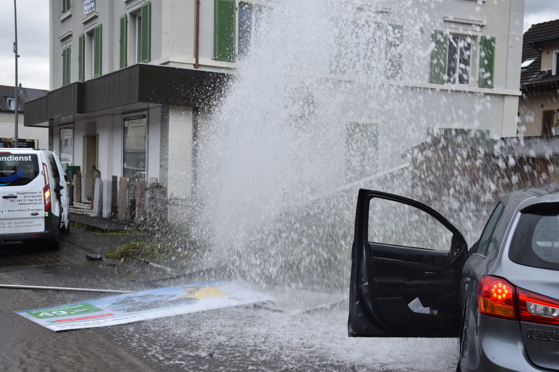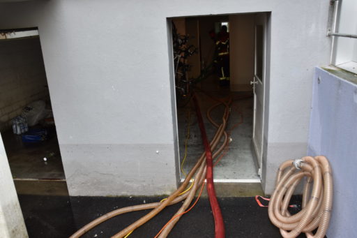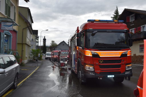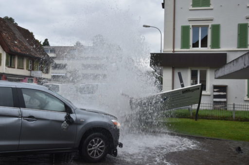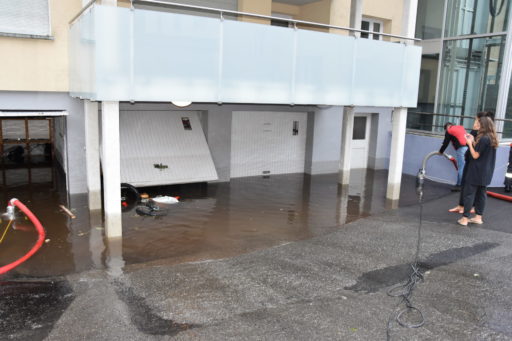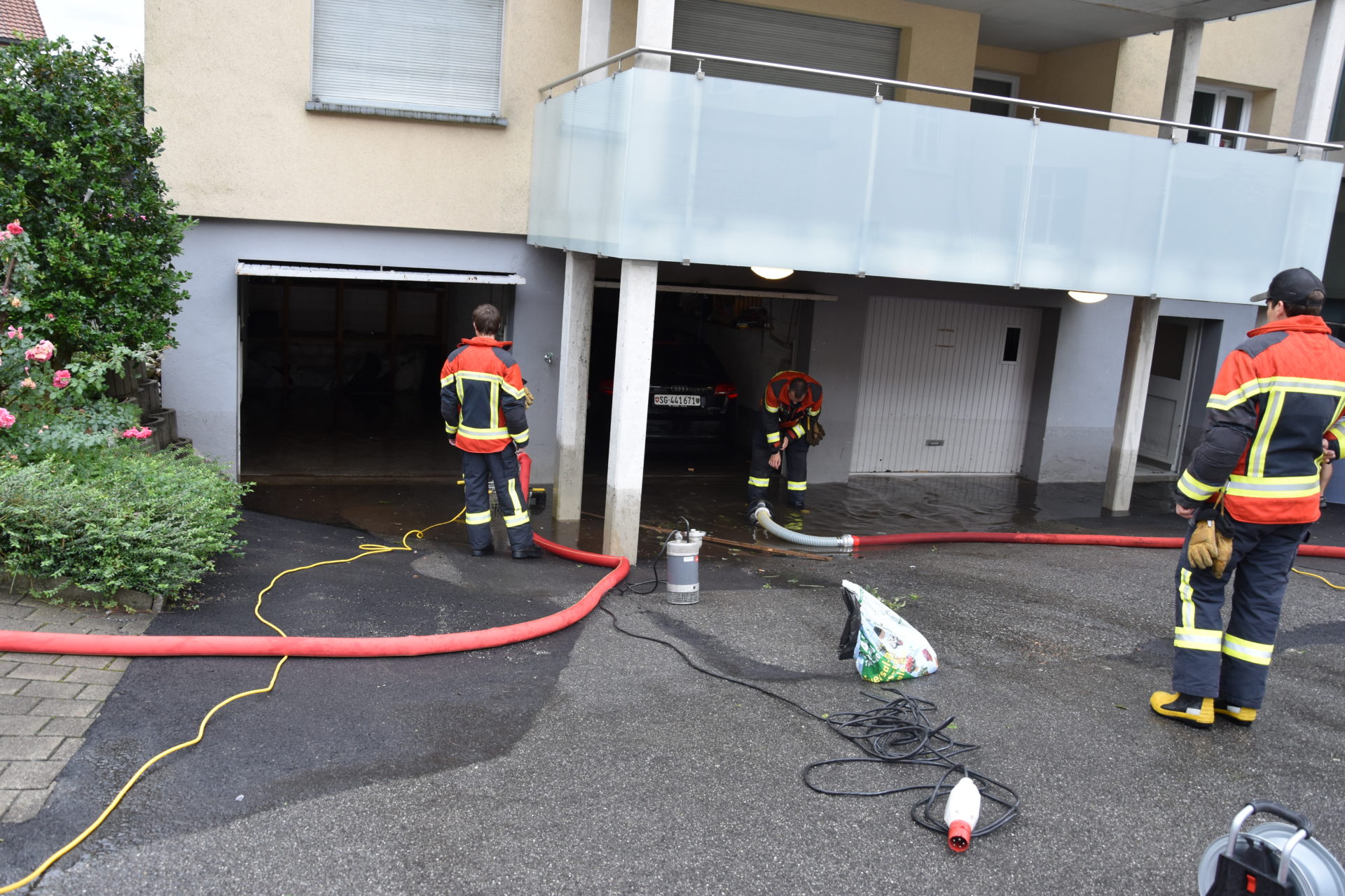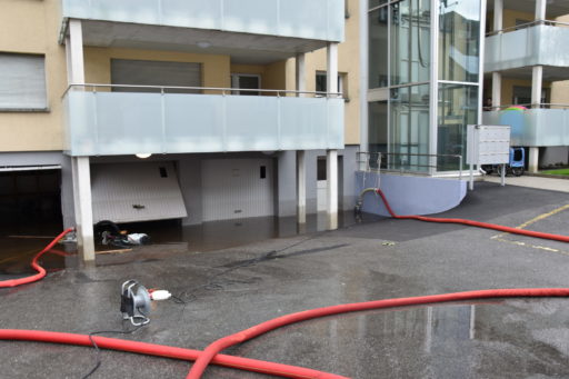 Durch einen Fahrzeugunfall wurde ein Hydrant umgefahren und durch das Ausfliessende Wasser wurden Garagen und Keller überflutet. Mit diversen Pumpen und Wassersaugeren wurde das Wasser abgepumpt beziehungsweise abgesaugt.Bericht und Bilder von Ihre-Feuerwehr