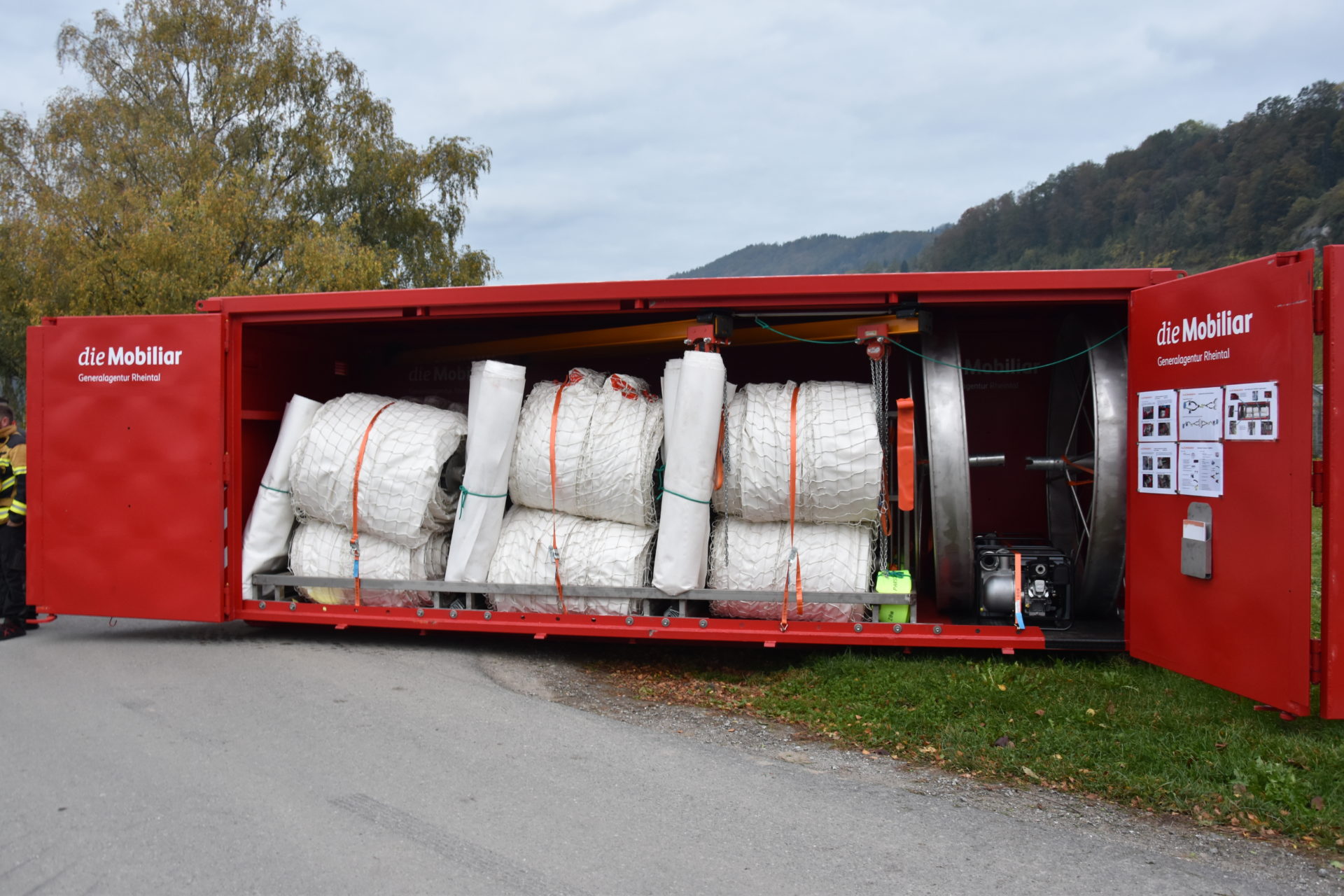 Es ist knallrot, sechs bis sieben Meter lang, knapp drei Meter breit und hoch. Der Wert des Geschenks beträgt über 300000 Franken. Im Innern des Containers ist ein mobiles Deichsystem verstaut, das die Gemeinden in der Region bei Dauerregen vor Überflutungen schützen soll.