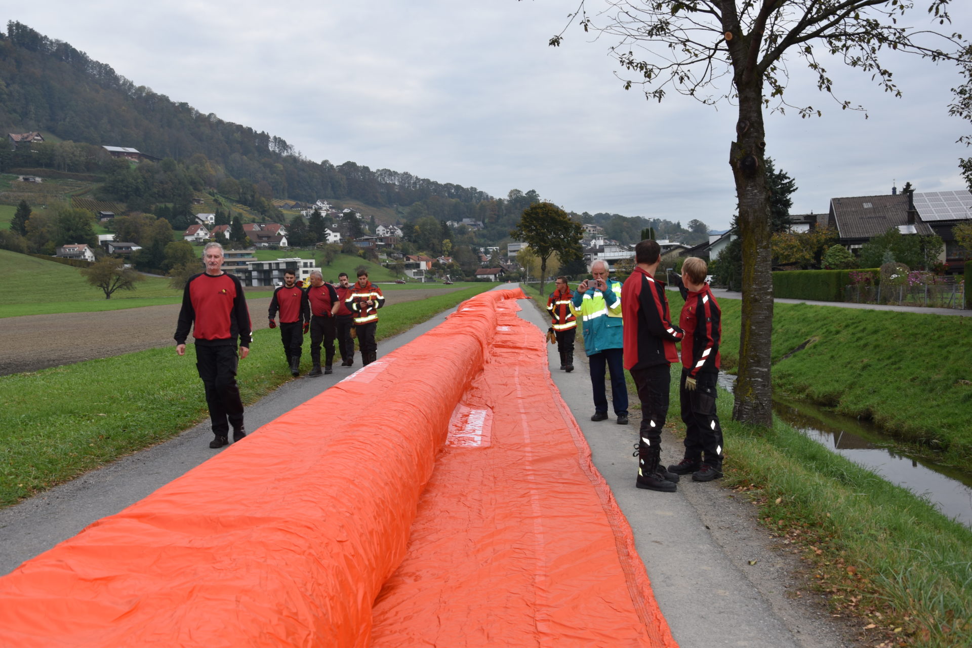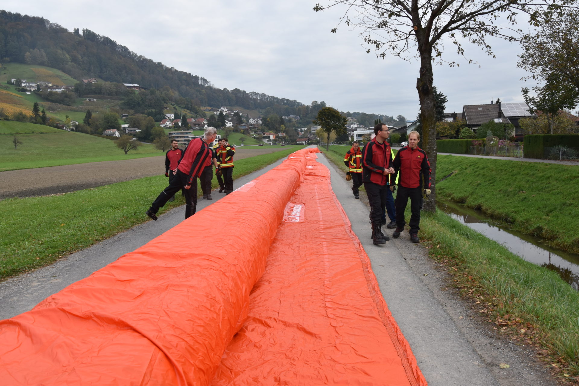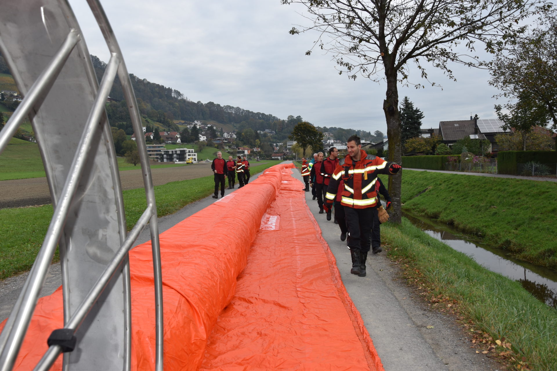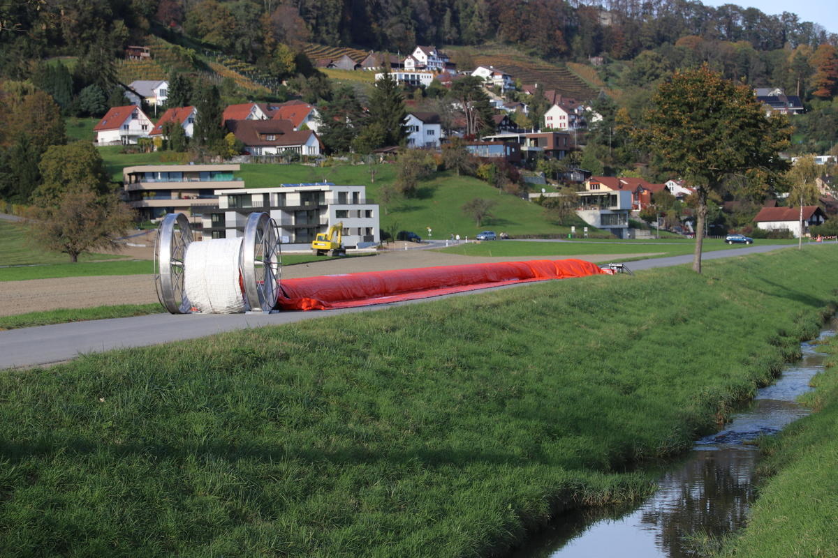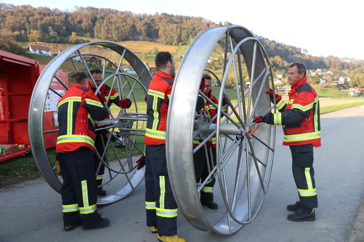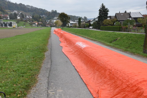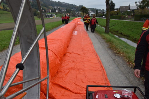 Bei einer Demonstration am Littenbach in Berneck zeigten die Feuerwehrler, wie das System funktioniert. Die Schlauchelemente mit einer Gesamtlänge von 440 Metern werden zwischen zwei grossen Rädern aufgehängt und zum Einsatzort gefahren. Dort werden die Schläuche entrollt und mit Luft oder Wasser vollgepumpt. Innert kürzester Zeit entsteht so ein stabiler Damm von 60 Zentimetern Höhe. «Die Dämme sollen in der ganzen Region zum Einsatz kommen», sagte Feuerwehrkommandant Markus Köppel. Es handle sich um eine Weiterentwicklung des Beaver-Hochwasserschutzsystems. «Es besticht durch eine einfache und schnelle Handhabung», sagte Markus Köppel. Natürlich habe das System auch seine Grenzen. Ziehen Gewitter mit Starkregen ohne Vorwarnung über die Region, können die mobilen Deiche nicht mehr viel ausrichten. Wenn aber hohe Niederschlagsmengen zu erwarten sind, können gefährdete Uferstellen, Häuser und ganze Wohnquartiere rechtzeitig gesichert und dadurch Schäden vermieden werden.