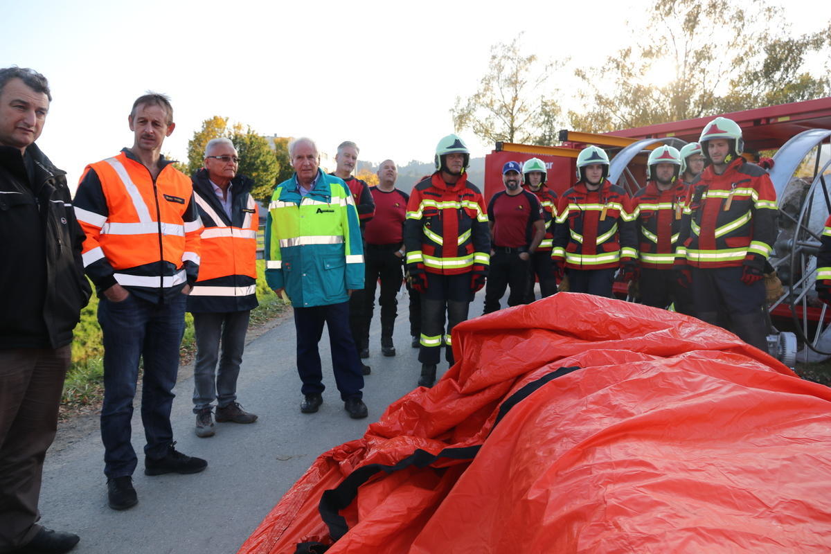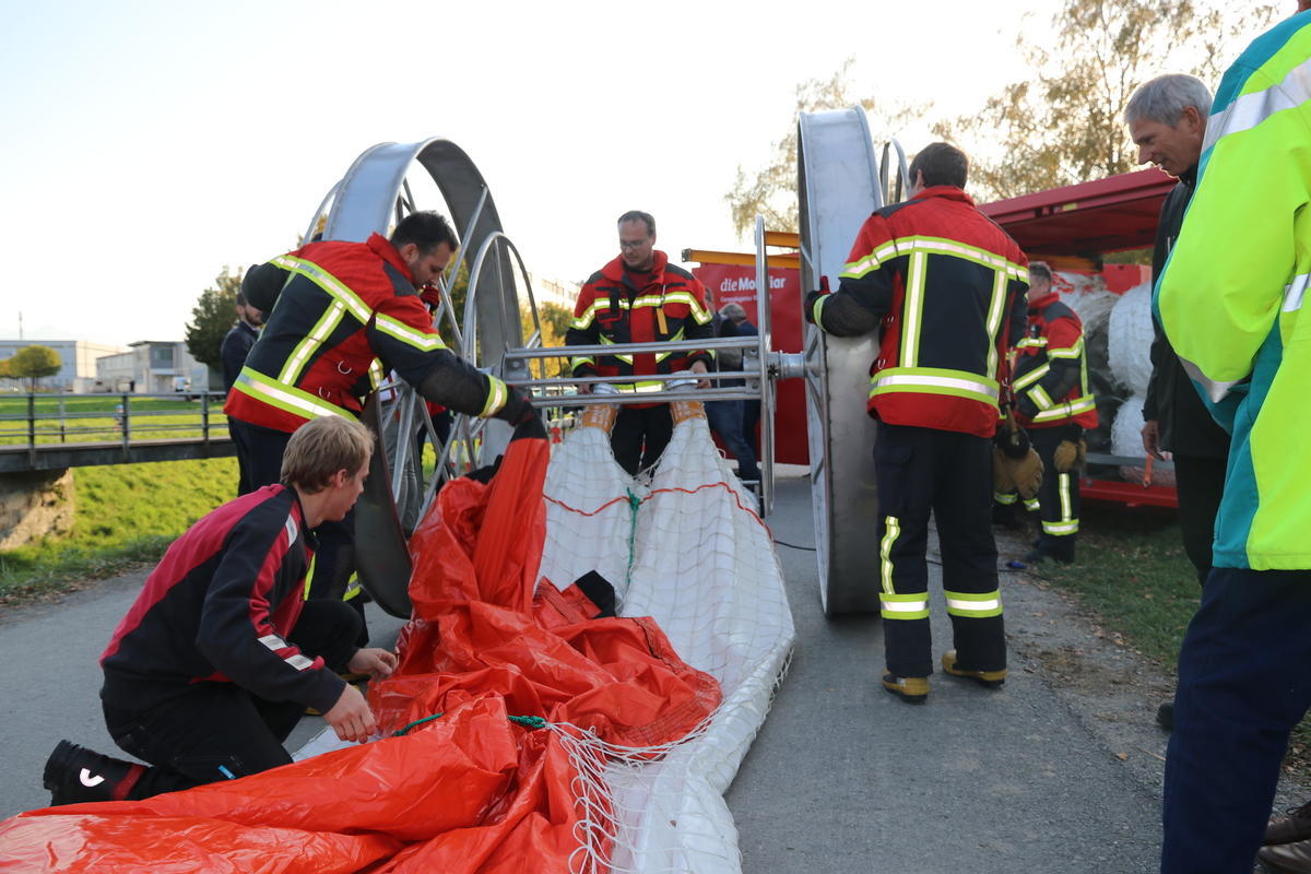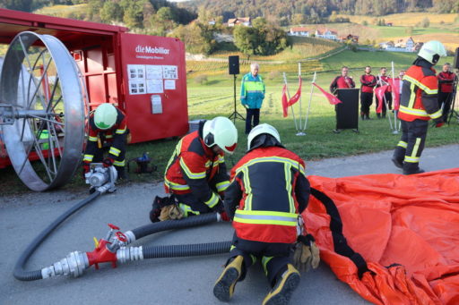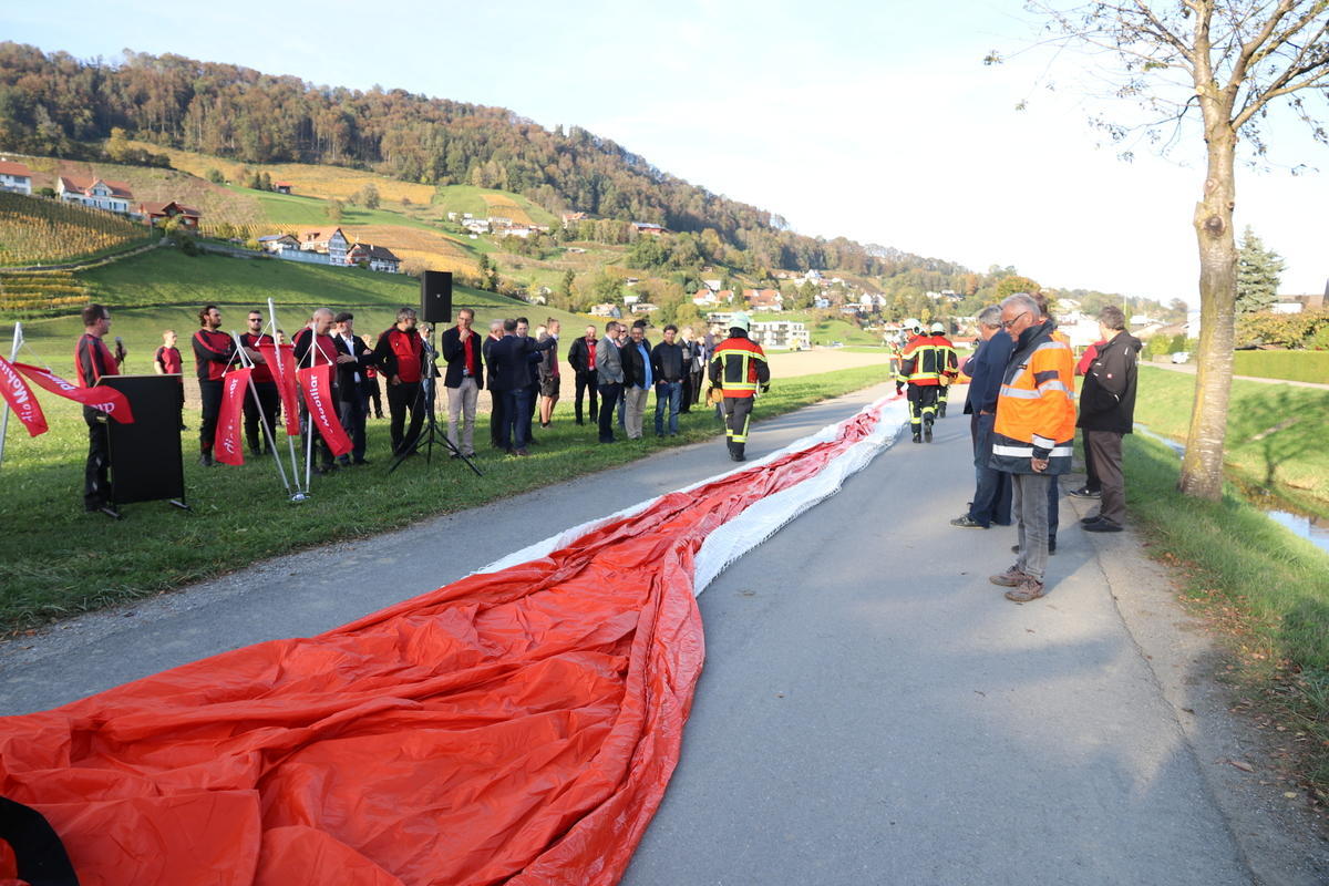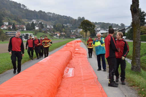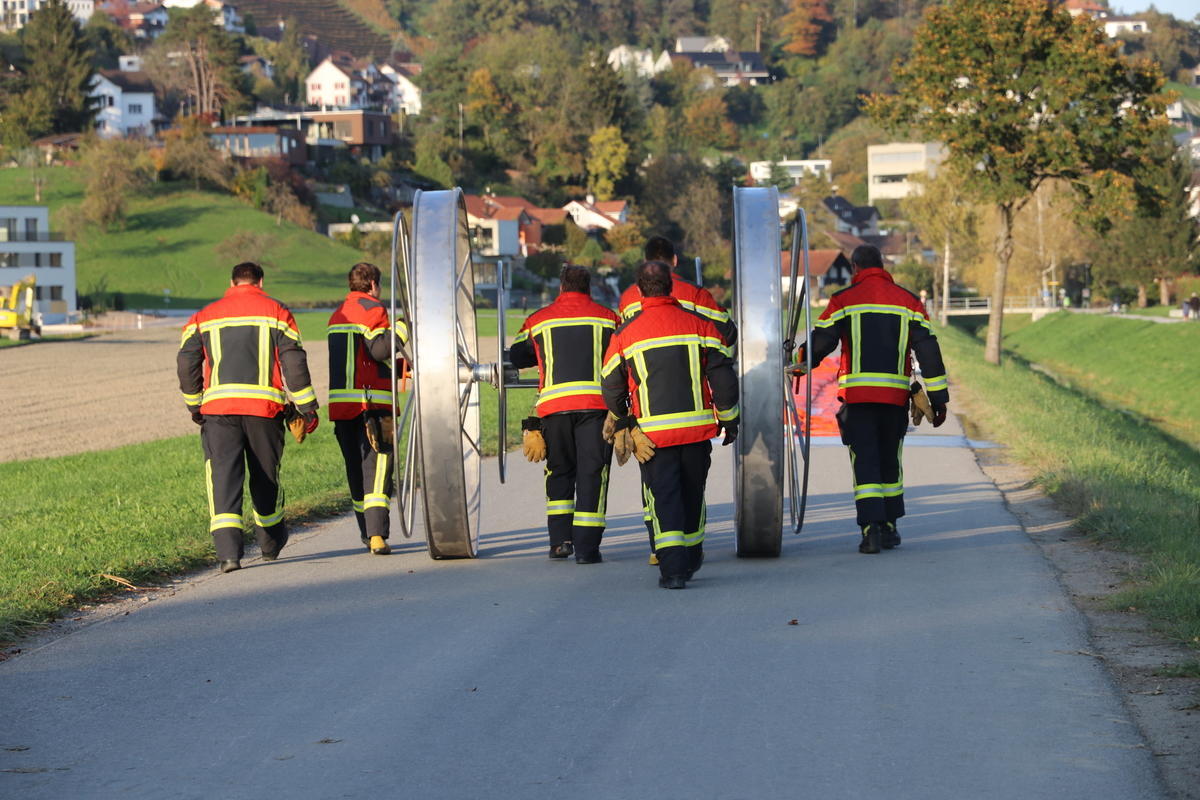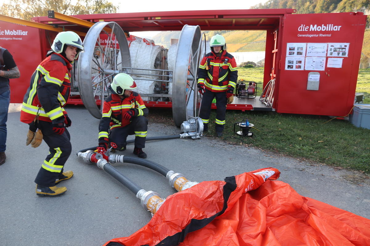 Am Freitagabend überreichte die Schweizerische Mobiliar der Feuerwehr Berneck-Au-Heerbrugg ein 300000 Franken teures Geschenk in Form eines mobilen Deichsystems. Bei der Demonstration zeigten die Einsatzkräfte, wie einfach und schnell der Hochwasserschutz aufgebaut ist.