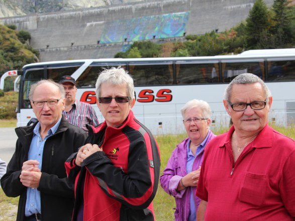 Nach einem Kaffeehalt in Küssnacht am Rigi ging die Fahrt weiter über den Brünig ins Berner Oberland und weiter auf den Grimselpass. Es stand als erster Höhepunkt die Besichtigung des Grimselkraftwerks und der Kristallkluft auf dem Programm. Eindrücklich waren die grossen Bauwerke und der Betrieb des riesigen Kraftwerks im Berginnern. Wasser ist eine erneuerbare Energie, die der Schweiz zur Verfügung steht und auch weiterhin trotz wirtschaftlich schwierigerem Umfeld genutzt und ausgebaut werden soll. Vom Grimsel ging die Fahrt nach dem Mittagessen weiter ins Wallis. Ein Zwischenhalt gab es in Brig bevor das Tagesziel in Sitten erreicht wurde.