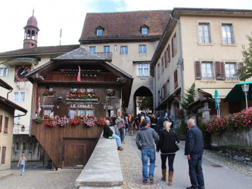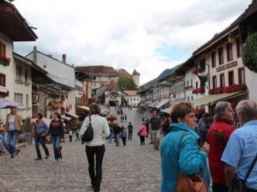 Der nächste Halt galt dem historischen Städtchen Greyerz. Mit vielen Touristen flanierte man gern durch das gut erhaltene mittelalterliche Städtchen mit dem prächtigen Schloss.