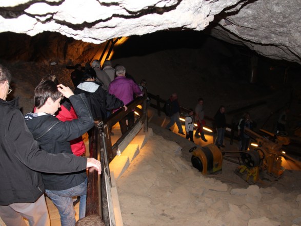 Mit der Besichtigung der „Mines de Sel de Bex“ erfolgte am Sonntagmorgen der zweite Höhepunkt der Vereinsreise. Eine Tonbildschau führte in die Geschichte der interessanten Salzmine ein. Fast unvorstellbar wie die Arbeiter vor über 150 Jahren mit einfachen Werkzeugen solch lange Stollen erstellt haben. Beeindruckend war die 10-minütige Fahrt mit der kleinen Stollenbahn ins Zentrum der Mine, der sich eine interessante Führung durch die Stollen, Treppen, und riesigen Hallen anschloss. Auch heute wird noch kommerziell Salz in Bex gewonnen.